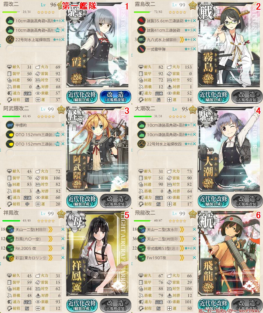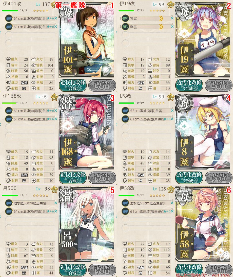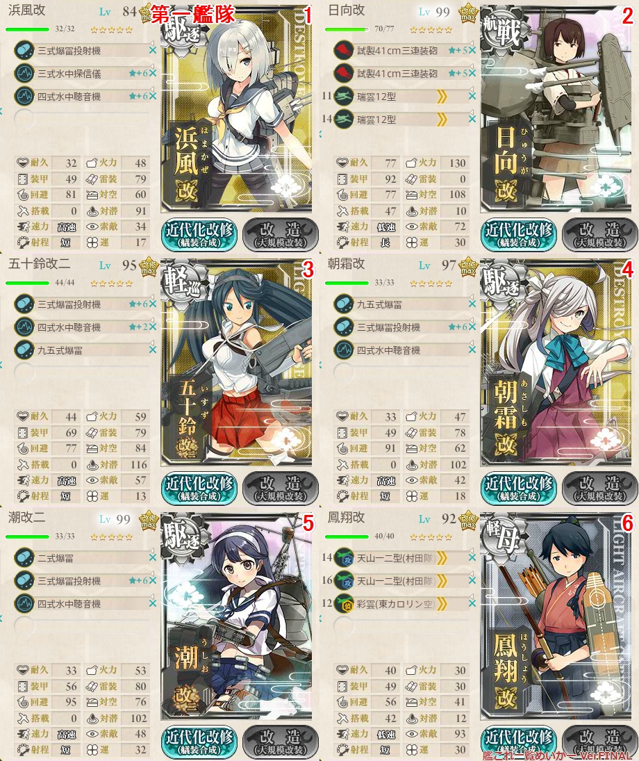 Hの潜水マスの突破率を上げるために対潜装備を多めにしてます