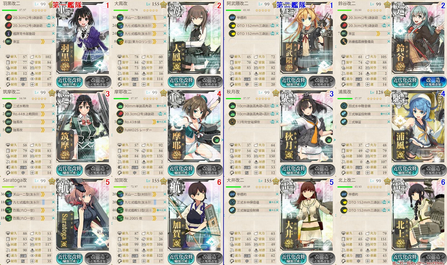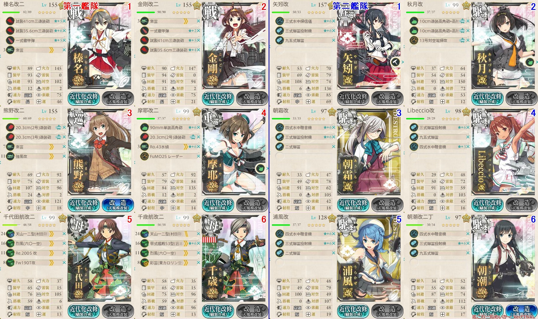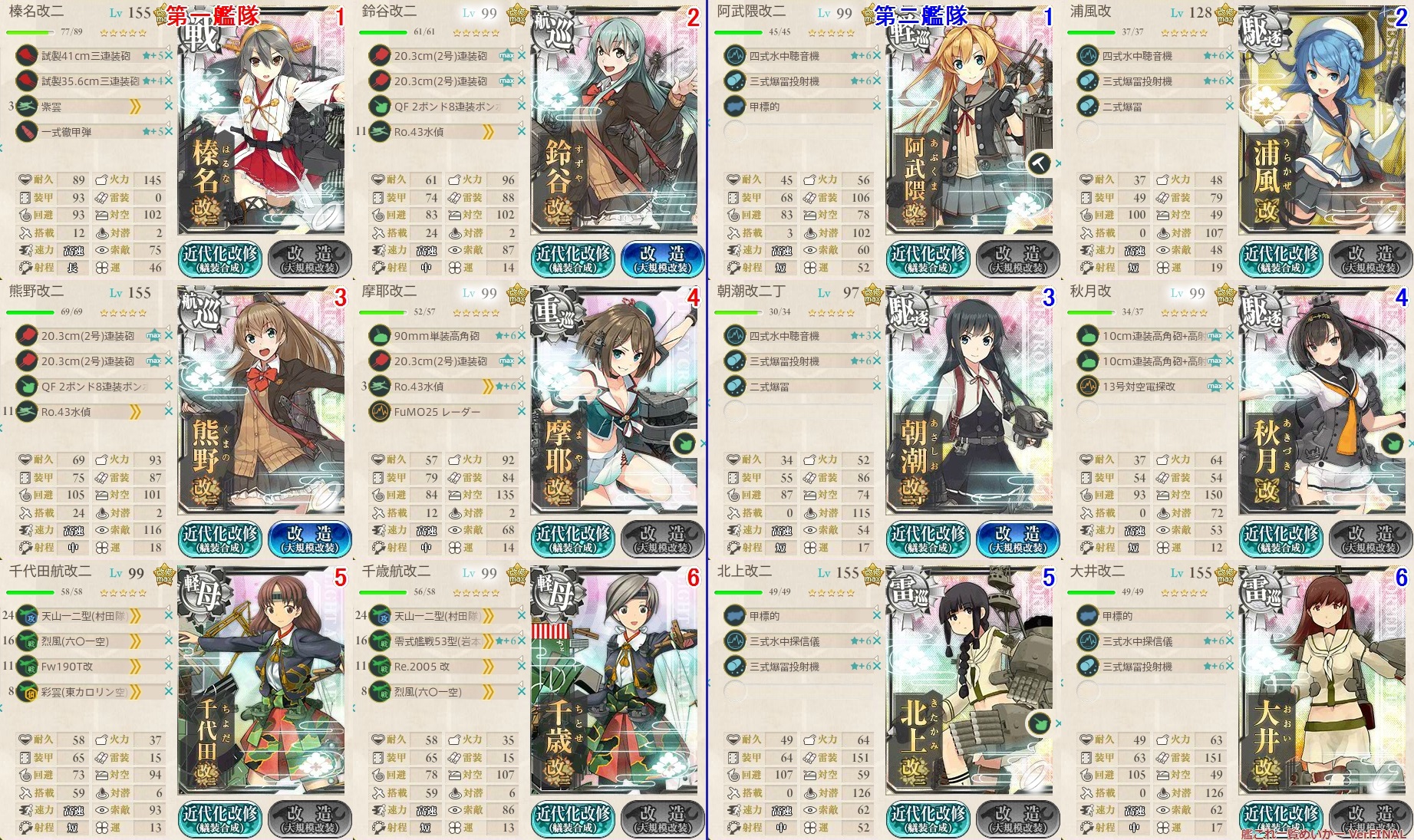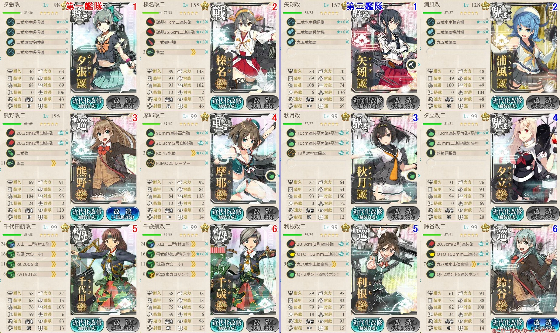 由良改二以外の場合は対潜装備が対空装備にします