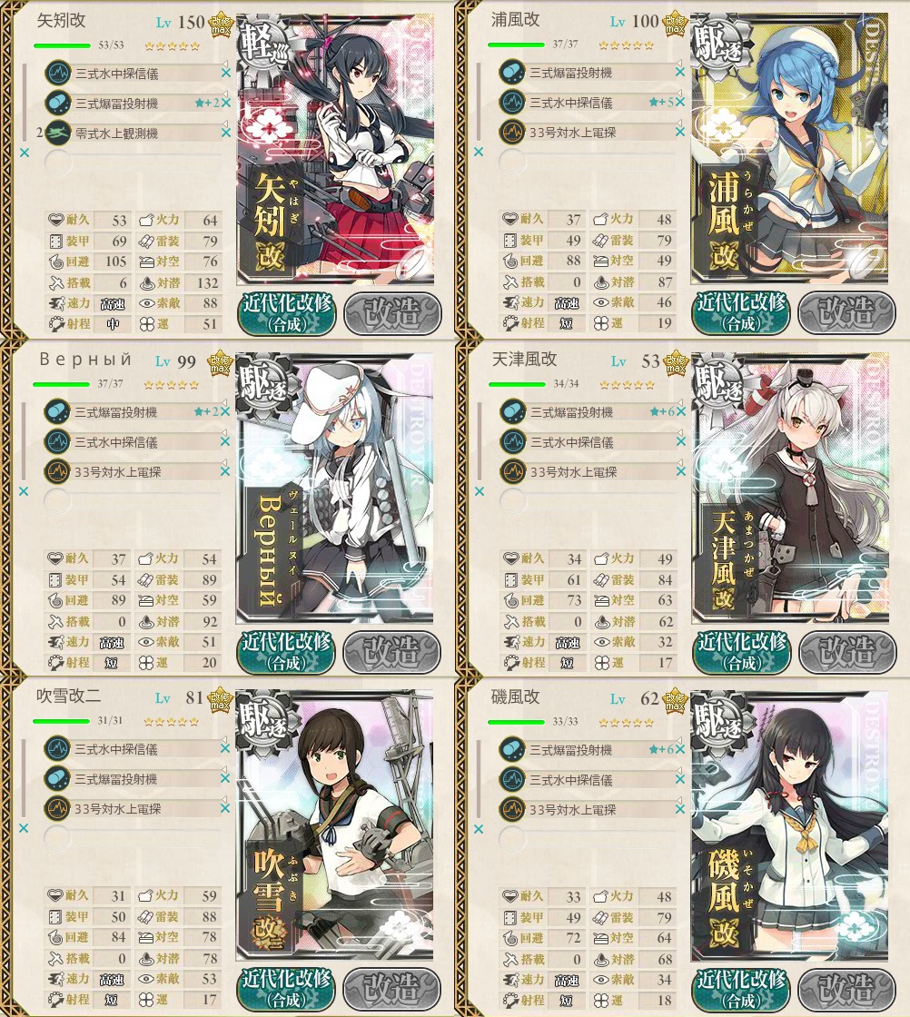 潜水艦だらけなので装備は対潜装備のみにしてあります