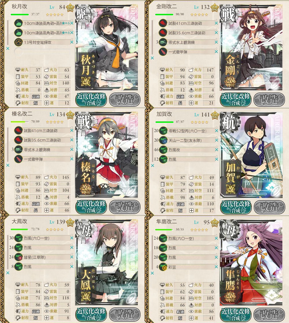 烈風(六〇一空)はかなり貴重な装備なので乙以上を推奨します