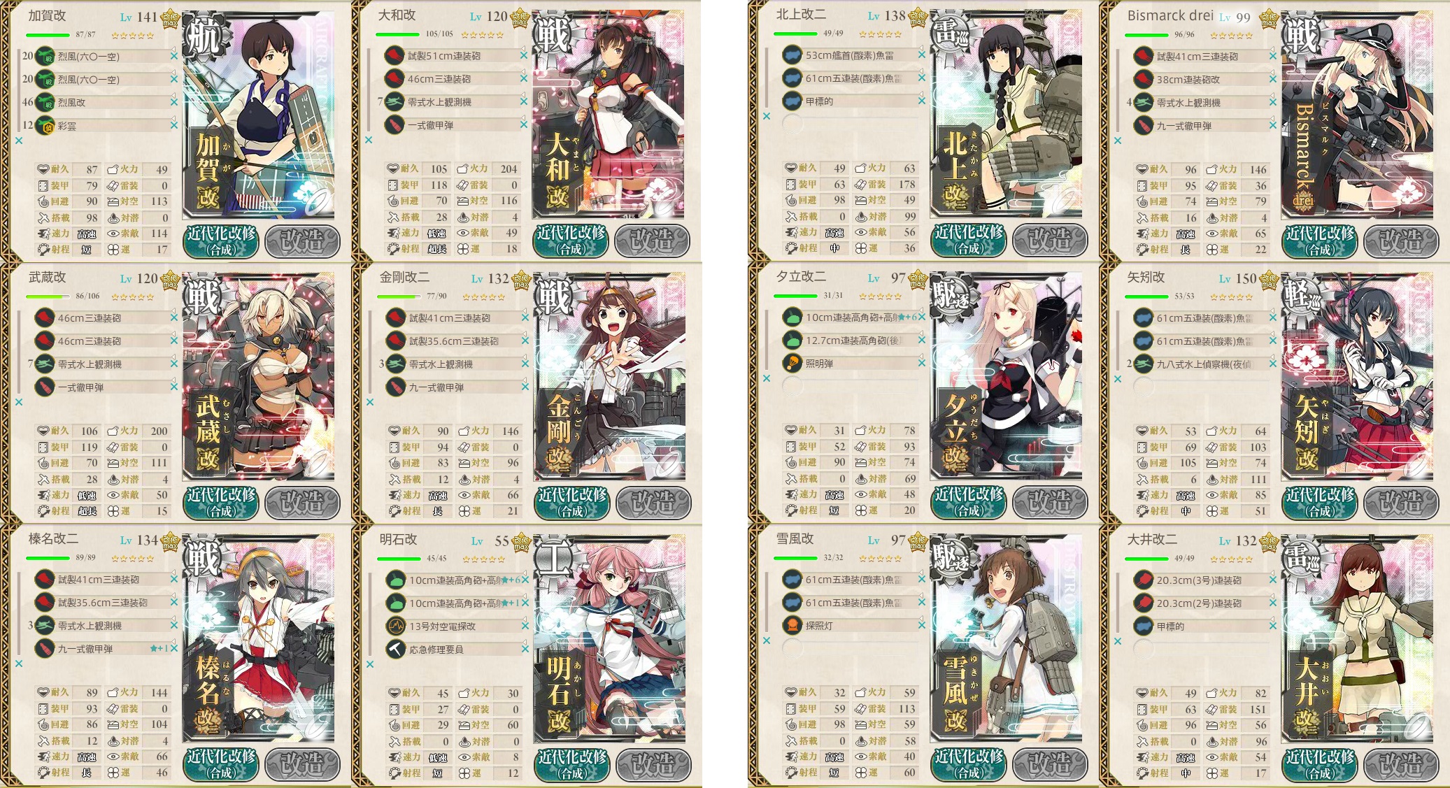 この編成の亜種で戦艦2を雷巡2にするのもオススメです