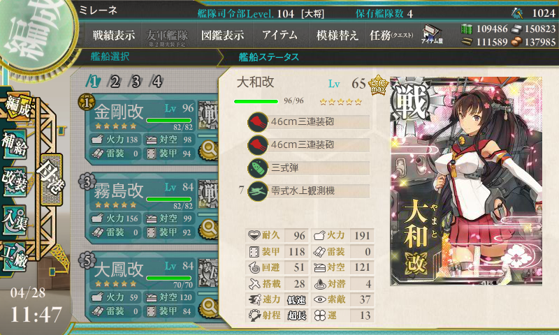 当然、大和型のほうがボス到達率や撃破率は上がるでしょうが・・・