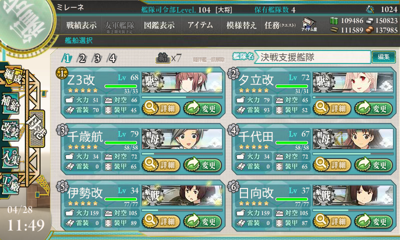 ご覧のとおり私のおススメ編成は戦艦4空母2の編成です
