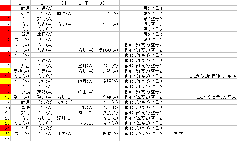 陣形は1戦目のみ輪形か単横、残りは単縦でいきます
