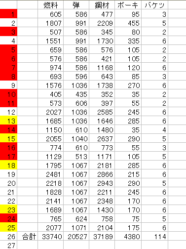 運次第ですがボーキ以外は5万くらいあればクリア射程圏だと思います