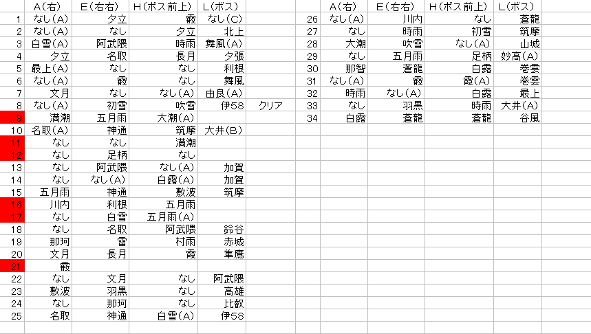 ご覧の通り2戦目の陣形を単横に変更してから大破撤退が減ってます