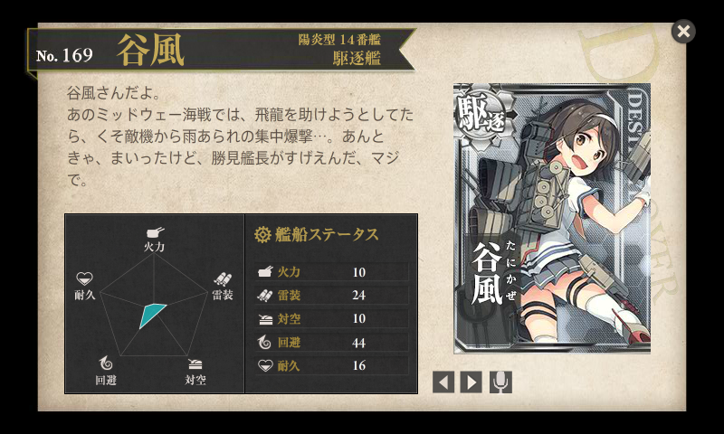 イベント海域ドロップの谷風ちゃんを無事にお迎えすることができました