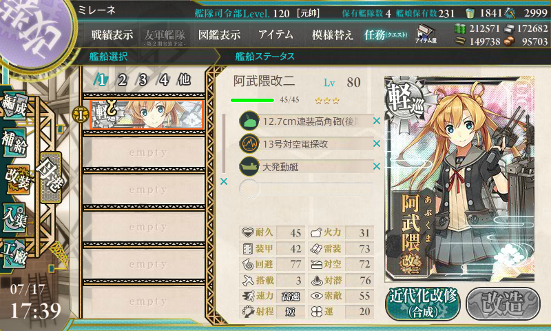 周回中にドロップ建姫がきた場合は視察前に改良や移籍で排除しましょう